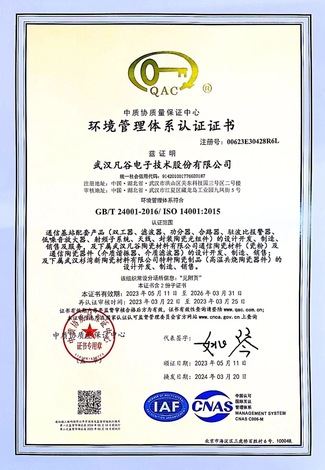 公司自2004年通過(guò)ISO14001環(huán)境管理體系認(rèn)證,目前保持有ISO14001:2015管理體系認(rèn)證證書(shū)。